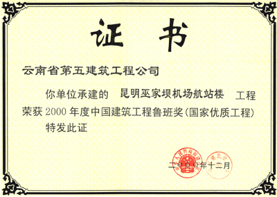 昆明建設局2000年度先進企業(yè)