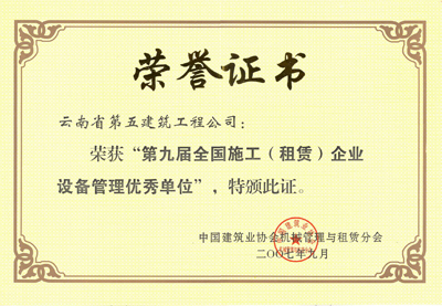 第九屆全國設備管理優(yōu)秀單位